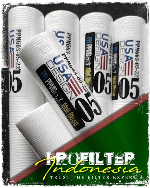 PFI PP Melt Blown filter cartridge adalah filtrasi yang terbuat dari bahan 100% polypropylene yang melalui proses pemanasan dan dibentuk menjadi sebuah filter sediment. Filter ini di design dengan susunan pori – pori luar lebih besar atau kasar dan pori – pori dalam lebih halus atau lebih kecil micronnya supaya aliran air yang melewati filter ini tidak terganggu.